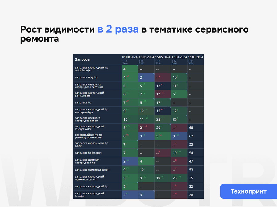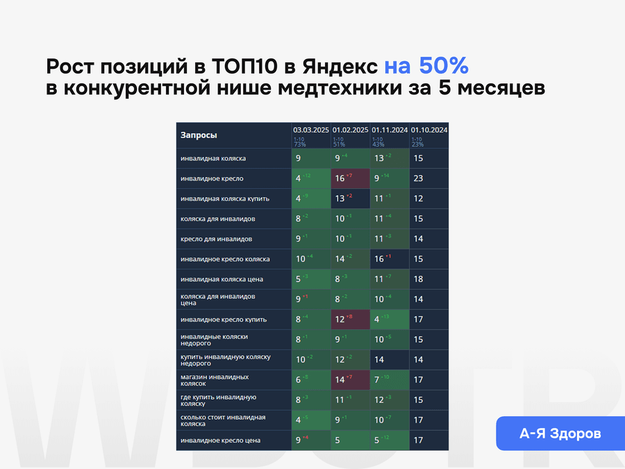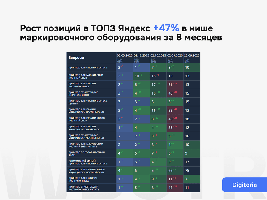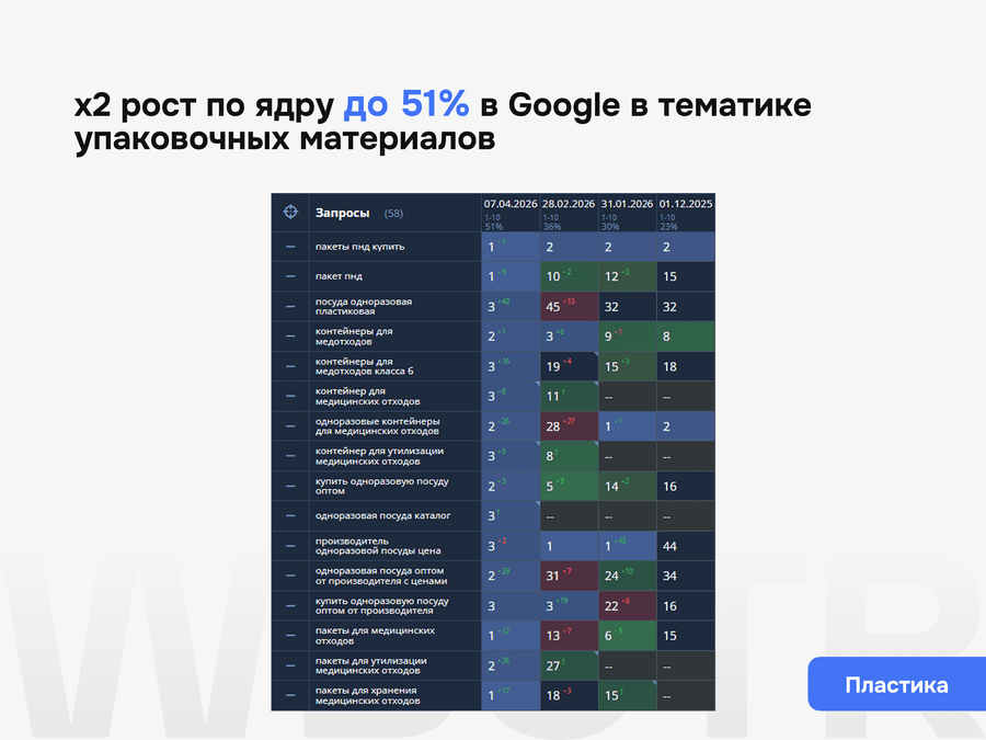 Корректируем стратегию на основе данных: усиливаем те страницы, кластеры и направления, которые дают более качественные обращения, и снижаем приоритет для зон, где трафик есть, а лиды слабые. Так SEO работает на бизнес-результат, а не только на видимость.